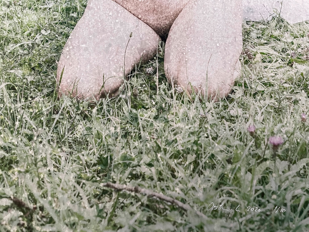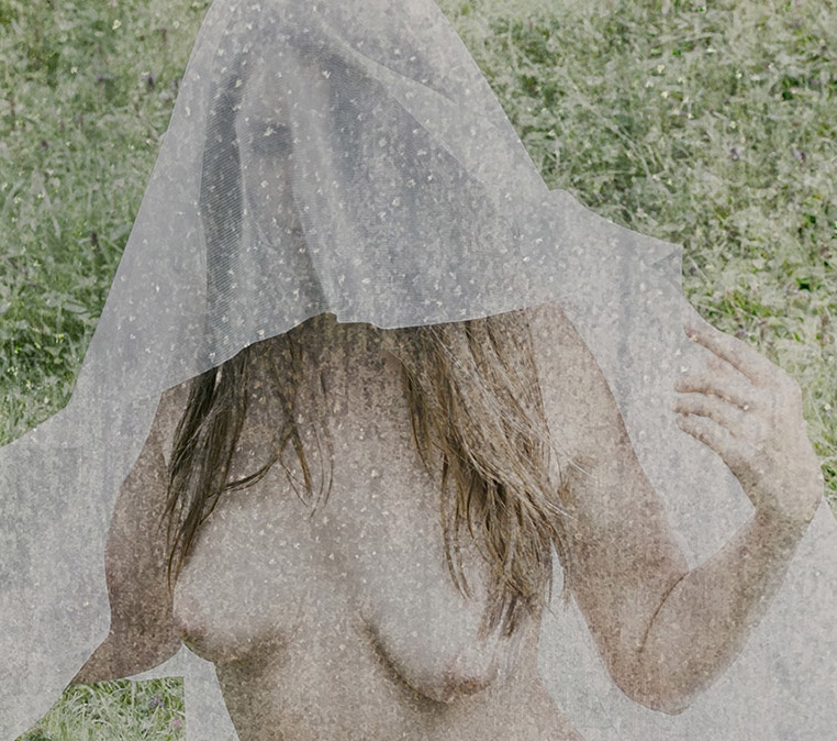 A naked young woman with a veil who, like a chameleon, hides herself in the landscape. The work is a digitally edited photo printed on Hahnemühle Photo Rag Ultra Smooth 305grm. It is also possible to buy an edition print with frame. Price for this is on request. Sizes 80 x 55 cm