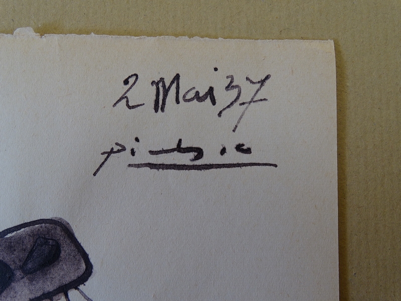 Pablo Picasso (attributed) ink drawing Very good condition Letter of authenticity includedPablo Ruiz Picasso[a][b] (25 October 1881 8 April 1973) was a Spanish painter, sculptor, printmaker, ceramicist and theatre designer who spent most of his adult life in France. Regarded as one of the most influential artists of the 20th century, he is known for co-founding the Cubist movement, the invention of constructed sculpture, the co-invention of collage, and for the wide variety of styles that he helped develop and explore. Among his most famous works are the proto-Cubist Les Demoiselles d'Avignon (1907), and the anti-war painting Guernica (1937), a dramatic portrayal of the bombing of Guernica by German and Italian air forces during the Spanish Civil War.