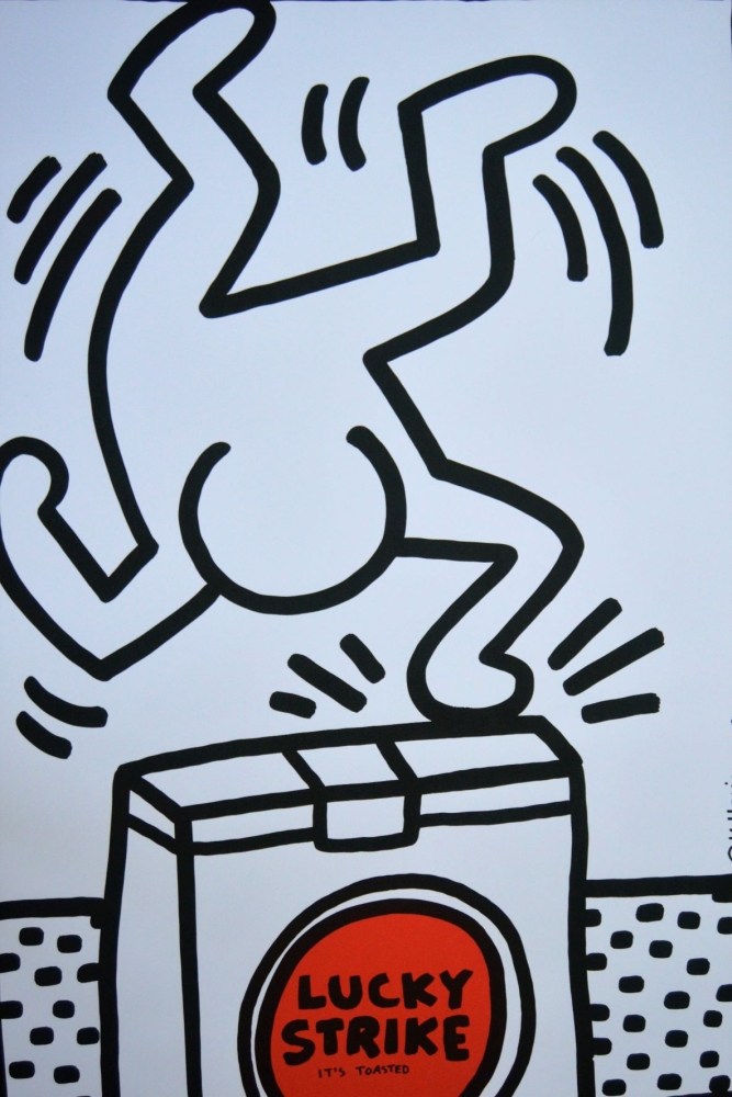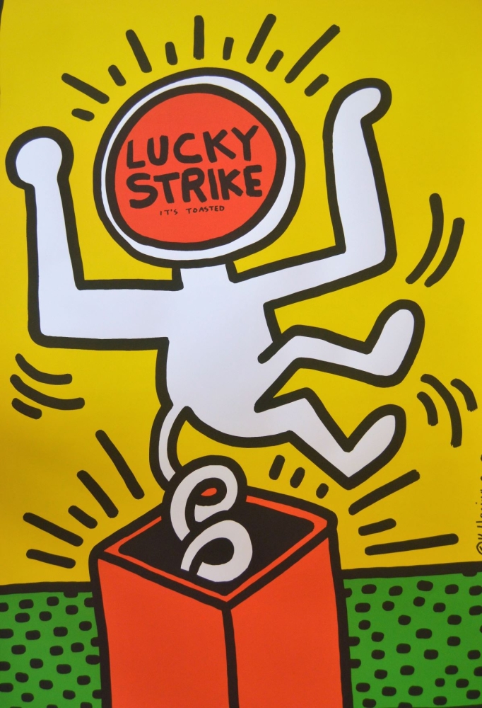 Three color offsets by Keith Haring for Lucky Strike. These are posters by Keith Haring from 1987. They are print signed and published by Albin Uldry Switzerland. Very bright colors and in perfect condition. Will be shipped in a spacious tube.