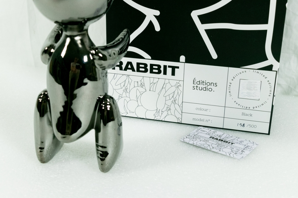 Balloon Rabbit released by Jeff Koons Rabbit's Editions Studio. The artwork is 33 cm high, 13 cm wide and 10 cm deep. Comes in the original box (see photos) and certificate from éditions studio.