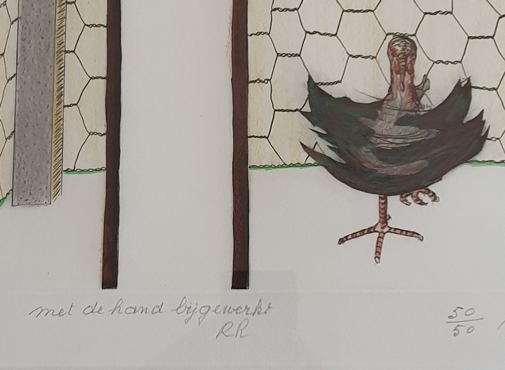 Very nice black and white etching by the Belgian artist Roger Raveel. The work was made in 50 copies. Only a few copies were colored by hand. The work offered is one of what makes this work unique. The work is in good condition. The work is framed with passe-partout. The work is described in the graphic oeuvre no. 32C.4 on page 61.
