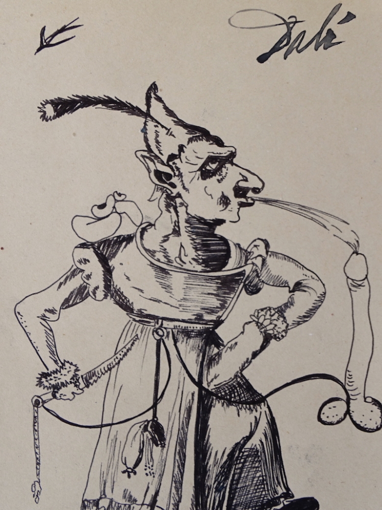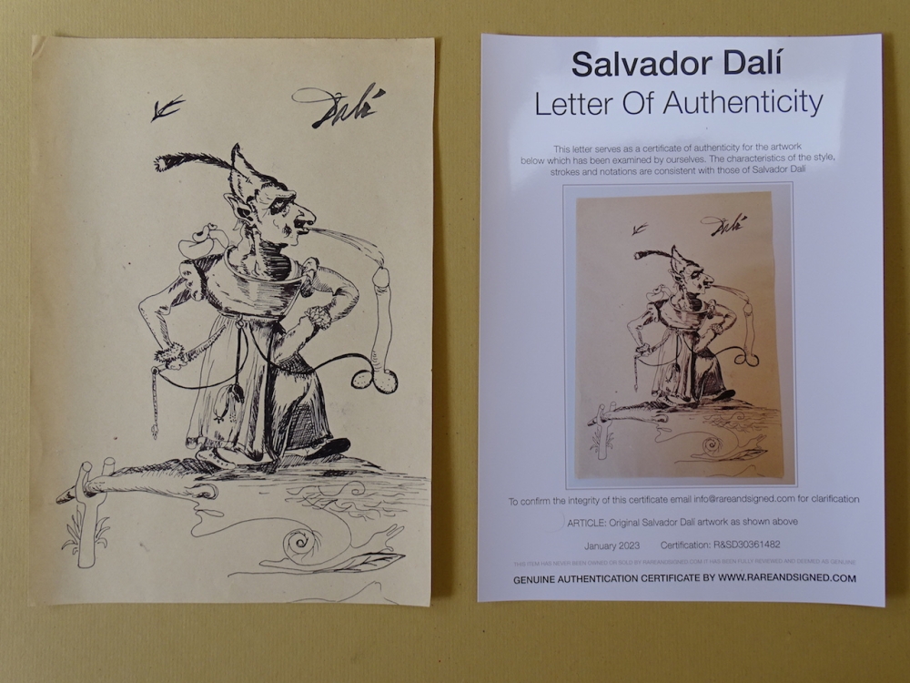 Salvador Dali (attributed) Salvador Domingo Felipe Jacinto Dalí i Domènech, Marquess of Dalí of Púbol 11 May 1904 23 January 1989) was a Spanish surrealist artist renowned for his technical skill, precise draftsmanship, and the striking and bizarre images in his work. Born in Figueres, Catalonia, Spain, Dalí received his formal education in fine arts in Madrid. Influenced by Impressionism and the Renaissance masters from a young age he became increasingly attracted to Cubism and avant-garde movements. He moved closer to Surrealism in the late 1920s and joined the Surrealist group in 1929, soon becoming one of its leading exponents. His best-known work, The Persistence of Memory, was completed in August 1931, and is one of the most famous Surrealist paintings. Dalí lived in France throughout the Spanish Civil War (1936 to 1939) before leaving for the United States in 1940 where he achieved commercial success. He returned to Spain in 1948 where he announced his return to the Catholic faith and developed his "nuclear mysticism" style, based on his interest in classicism, mysticism, and recent scientific developments.