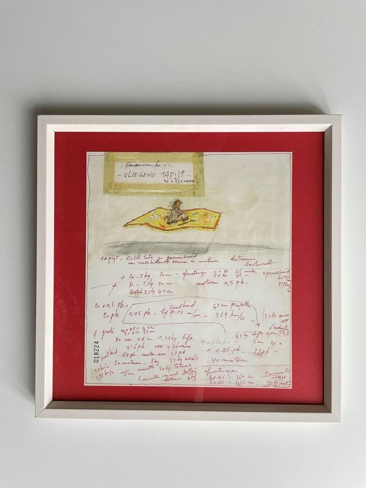 Panamarenko - Vliegend tapijt Lithografie op mat papier - gesigneerd in de plaat - 2000 Limited edition no. 18224 Deze editie is geprint op Gardapat 13 Kiara paper - 150 gram papier. De print is ingekaderd achter zuurvrije passe-partout. De editie is het resultaat van een samenwerking met het Panamarenko Collectief in Antwerpen. afmetingen editie: 24.5 x 21.5 cm. (kader is enkele cm groter) Uitstekende staat ! Panamarenko werd geboren in Antwerpen in 1940 alwaar hij werkte en woonde. Hij wordt beschouwd als 1 van de belangrijkste na-oorlogse kunstenaars en stelde internationaal zijn werk tentoon in belangrijke musea. Wordt verpakt in bubbleplastic en verstuurd met track and trace