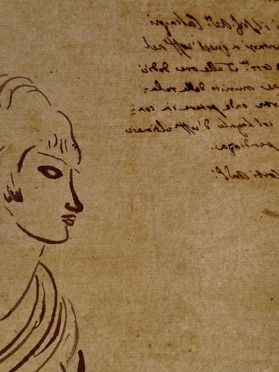 Amedeo Modigliani (attributed), ink drawing, hand signed Amedeo Clemente Modigliani was an Italian painter and sculptor who worked mainly in France. He is known for portraits and nudes in a modern style characterized by a surreal elongation of faces, necks, and figures that were not received well during his lifetime, but later became much sought-after. Modigliani spent his youth in Italy, where he studied the art of antiquity and the Renaissance. In 1906, he moved to Paris, where he came into contact with such artists as Pablo Picasso and Constantin Brâncuși. By 1912, Modigliani was exhibiting highly stylized sculptures with Cubists of the Section d'Or group at the Salon d'Automne.