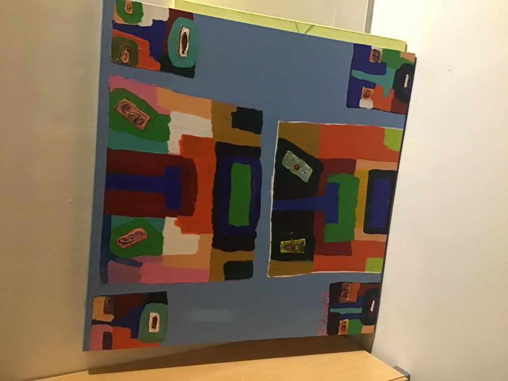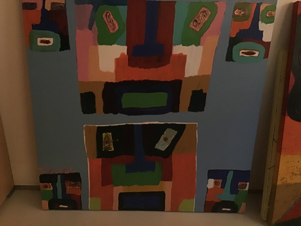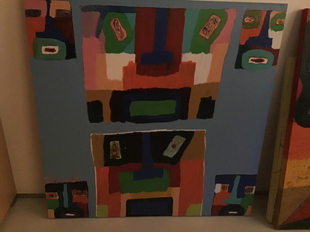 Early original work acrylic on canvas by Hannes D'Haese .... is a Belgian artist born in 1965 in Veurne. He is a visual artist and painter. Son of the sculptress Begga D'Haese. From the press: Traveling around the world from Los Angeles to Bora-Bora and from Rotterdam to London, he discovered himself as an artist. Inspired by Cobra artists such as Karel Appel and Asger Jorn, he created his own unique style and gives modern art a new twist. His lyrics are a reflection of his and other people's personal life experiences. Exhibited in The State of Art Gallery in London in 2005 and 2006, in the Marine Gallery in Zeebrugge in 2008.