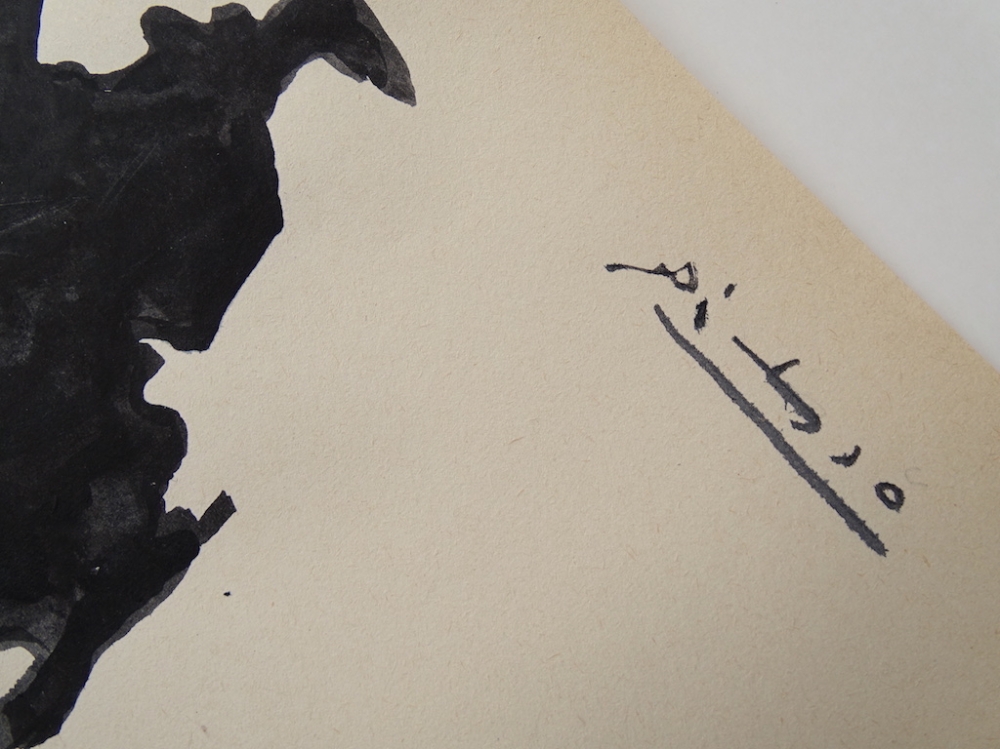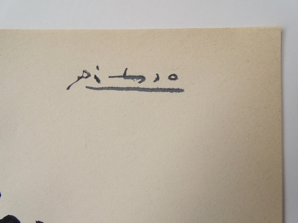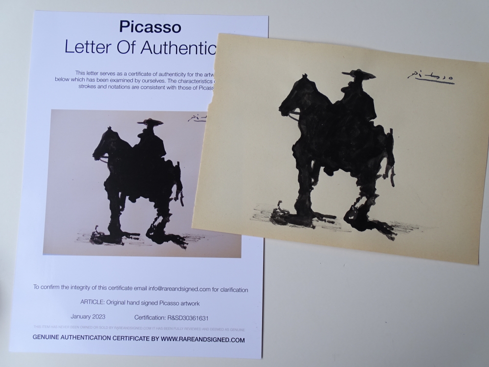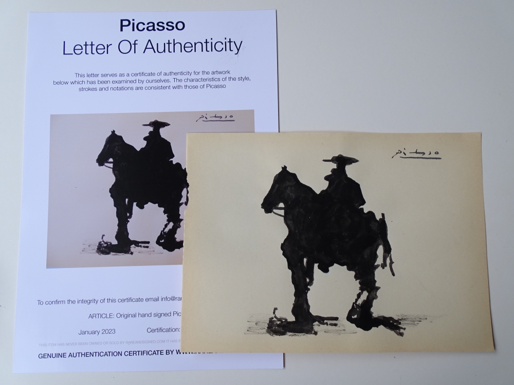 Pablo Picasso (attributed) ink drawing Very good condition Letter of authenticity includedPablo Ruiz Picasso[a][b] (25 October 1881 8 April 1973) was a Spanish painter, sculptor, printmaker, ceramicist and theatre designer who spent most of his adult life in France. Regarded as one of the most influential artists of the 20th century, he is known for co-founding the Cubist movement, the invention of constructed sculpture, the co-invention of collage, and for the wide variety of styles that he helped develop and explore. Among his most famous works are the proto-Cubist Les Demoiselles d'Avignon (1907), and the anti-war painting Guernica (1937), a dramatic portrayal of the bombing of Guernica by German and Italian air forces during the Spanish Civil War.