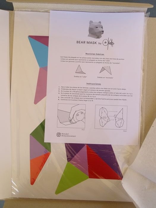 Okuda San Miguel Designed to be easily built by anyone. Package includes: A3 digital print on fine art coated paper by Okuda 8 full color sheets with die cutting pieces ready to assemble Double side roller tape Design cardboard folder Also includes original instruction sheet and double-sided roller tape. Okuda (1980) is the name under which Spanish artist Oscar San Miguel Erice has been operating since he first began painting in the streets in 1997. His work has since evolved into an authorial visual language based on the use of multicoloured geometric patterns, organic forms, anthropomorphic figures and grey anonymous bodies, which come to life in the form of large-scale murals, installations, paintings and sculptures that offer views on crucial subjects such as existentialism, the universe, the meaning of life and the false freedom of capitalism, highlighting the contradictions between modernity and our roots. Okuda is one of the most important pop art artists of the 20th century in the new pop culture, such as Andy Warhol, Keith Haring, KAWS, Roy Lichtenstein, Banksy, Invader, or Jean-Michel Basquiat.