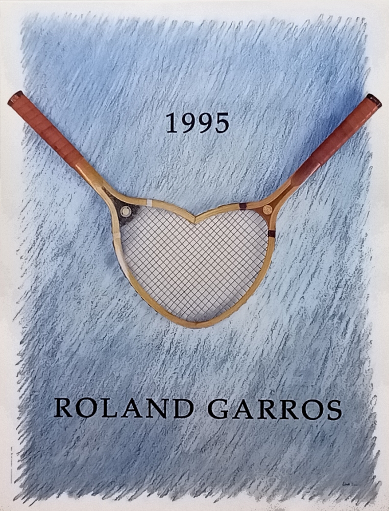 Official poster for the Roland Garros tennis tournament in Paris in 1995. Offset lithograph signed in the plate. © Donald Lipski Galerie Lelong 1995. 75*57cm