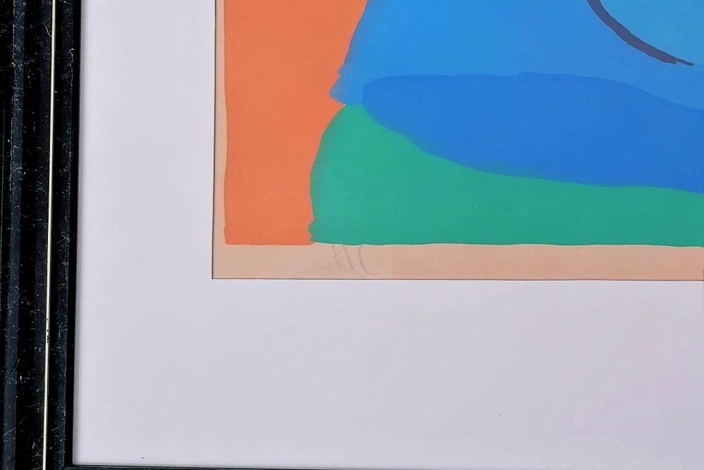 KAREL APPEL (1921-2006) Twee abstracte figuren. Mooie zeer grote en zeldzame lithografie uit 1970 Gesigneerd en gedateerd rechts onder door de kunstenaar. Afmetingen zijn 72 x 105 cm In een zwart kader onder plexi- glas waarvan de totale maten 101 x 131 zijn.
