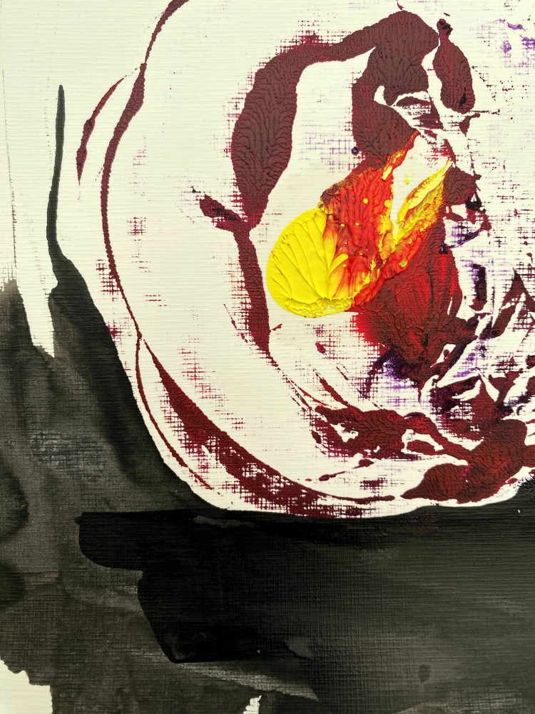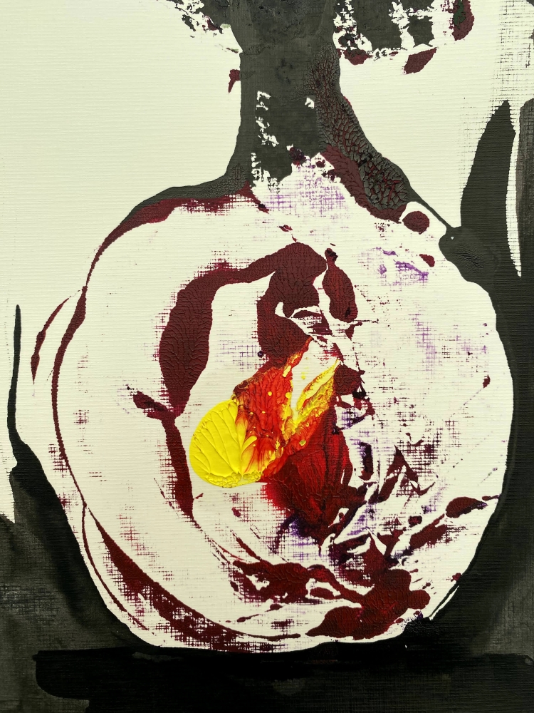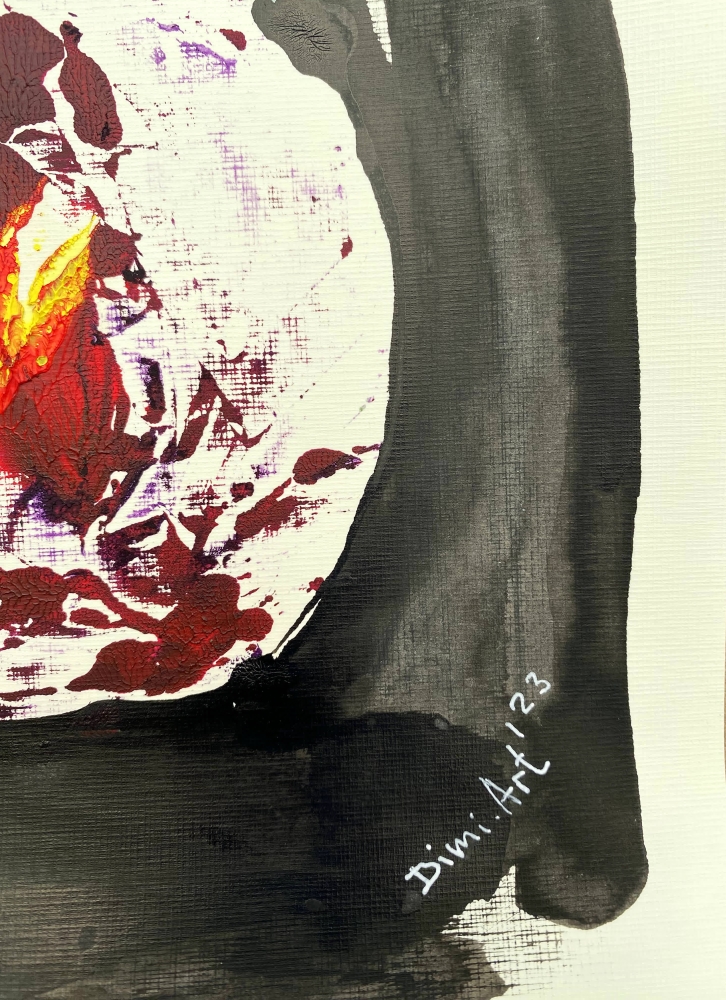 This is oil and ink on paper artwork. Format A4, paper is 240g/sq.m. I'm the author of this artwork. The drawing represents series where I'm making an attempt to showcase uniqueness of our emotions and show viewers that each of us are being represented as a combination of body (tangible part) and emotions (intangible piece). And each of us has something unique when it comes of emotions and feelings.