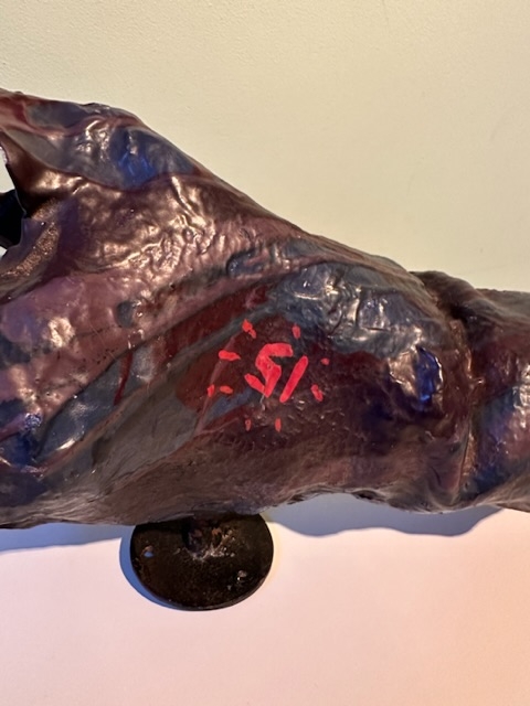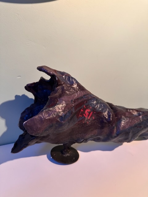 Polyester appliqué with painting. Dated circa 1995/96, which was previously part of the Esta Loca business set up by Arne Suinze Unique work. The first image is an example. This work has a round base with which you can attach the work to a surface so that the work does not touch the surface. Signed with red 15