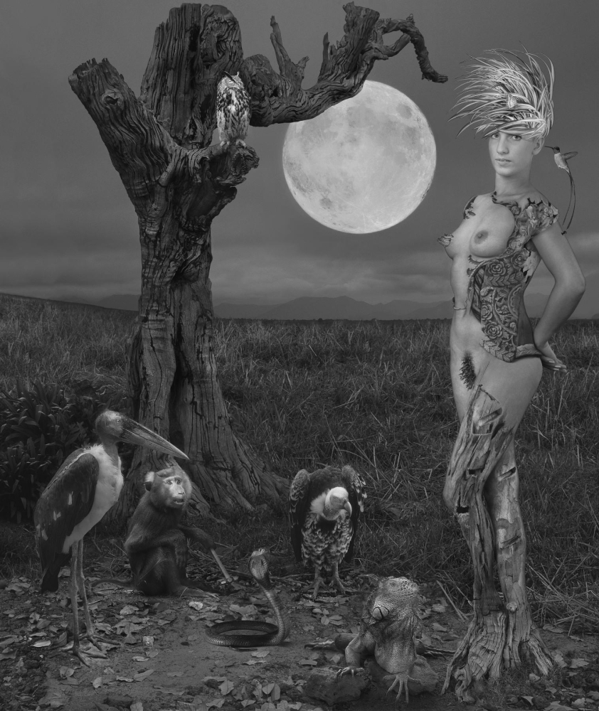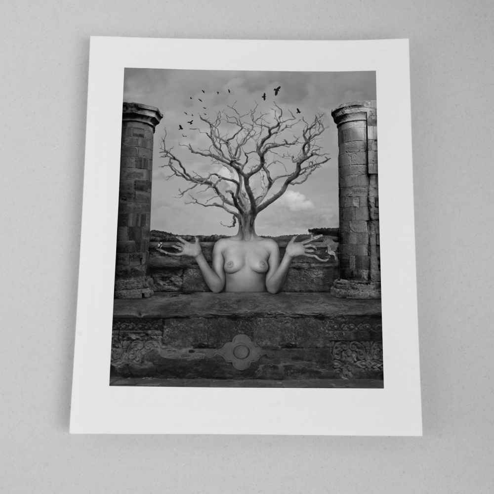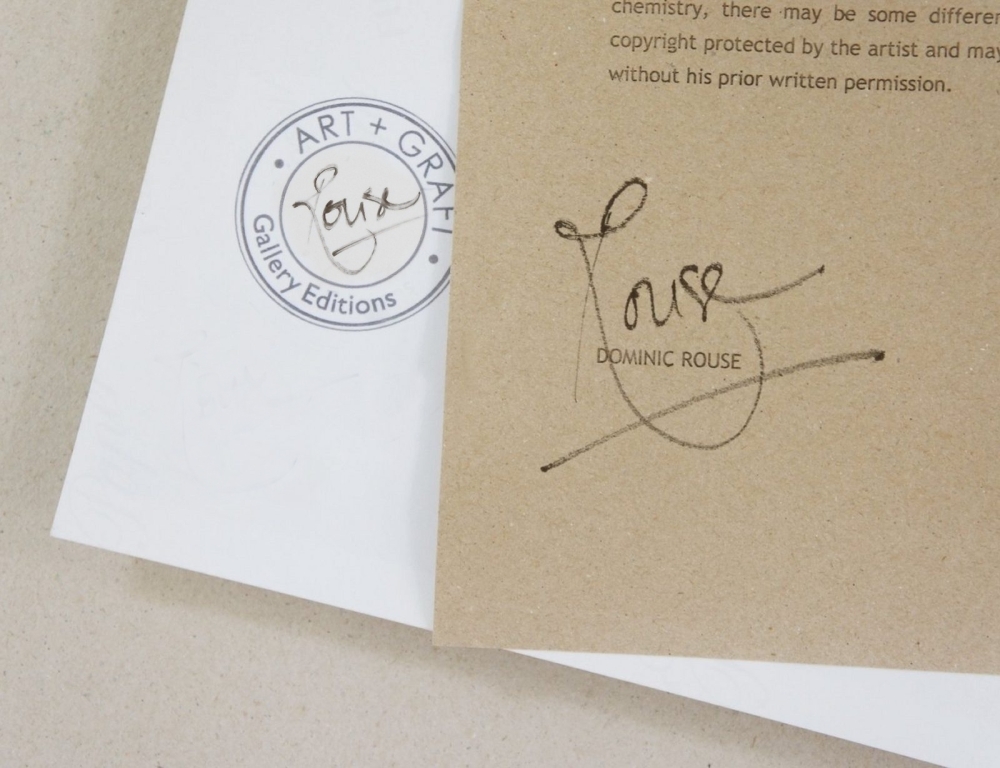 "Dominic Rouse would be the first to admit that his use of the camera and the darkroom are unusual and when I think of his work I think of the painters Bruegel, Hieronymus Bosch and René Magritte. Rouse does not photograph the world he makes photographs of his mind. Looking at his images is a profoundly different experience than looking at, say, an Ansel Adams photograph. With Adams one prepares for his photographs by reading John Muir. With Rouse one prepares by reading Lewis Carroll, or even Freud." - Brooks Jensen, LensWork Publishing ● Two chromogenic prints on Fuji Crystal Archive paper ● 1) 'Come to mother' (2000) ● 2) 'Moonrise over Primordia' (2010) ● Paper Size 12" x 10" (30 x 25 cm) - Image Size 9.5" x 8" (24 x 20 cm) - Print Date April 2023 - Catalogue DHR025/059FU - Condition MINT ● Hand-Signed in black ink - Artist stamps - Certificate of Print Authenticity ● Ships in a large PVC tube with track & trace