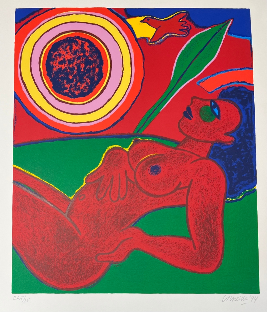 Rare and beautiful work signed and dated by the artist's hand at the bottom. Artist's copy E/A with Atelier Corneille stamp on the back. Cobra exhibition with the largest American collection of Corneille in Miami in spring and summer 2023. The Cobra retrospective in the Cobra Museum in Amstelveen has just ended on 15 January. Release of a Cobra / Corneille stamp by Bpost in 2023 Corneille jewellery exhibited at the Boghossian Foundation until 14 May 2023 (Ornamentum, Collection Diane Venet) Original silkscreen by the painter Guillaume Corneille (1922-2010), born in Liege of Dutch parents and founding member of the Cobra group with Karel Appel, Asger Jorn, Constant, Dotremont and later Alechinsky and Jacques Doucet. Total dimensions : 75 x 61 cm - Perfect condition - Secure shipping with UPS