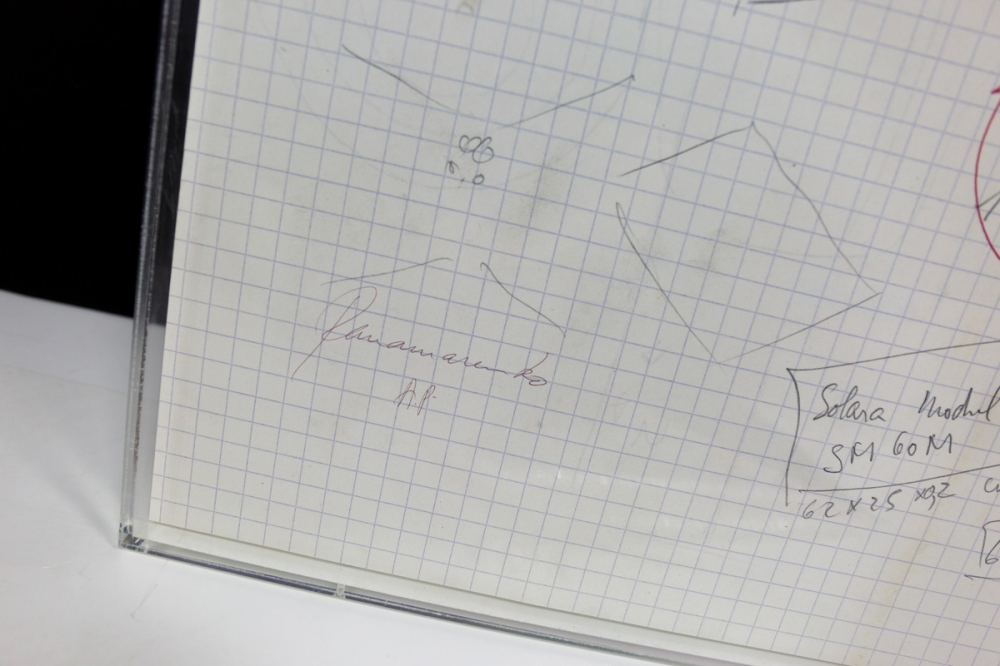 Work is in good condition, mounted in a plexibox and is delivered with a certificate of authenticity from the Panamarenkoshop. The only remark is a crease under the word "propane", see photo 4.