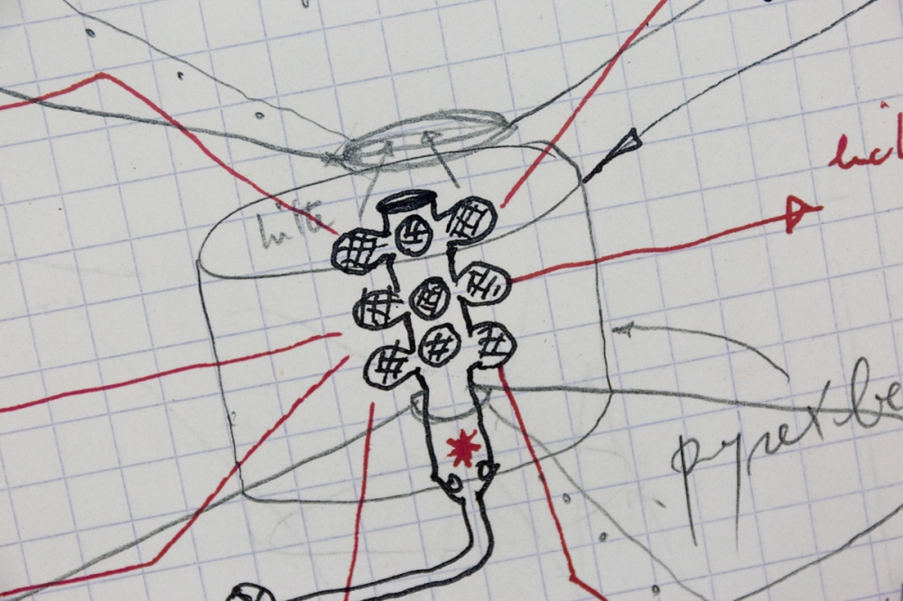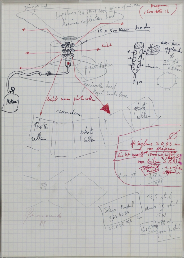 A lithograph of Panamarenko signed and numbered as AP, from the Thermo Photovoltaic Energy converter series .