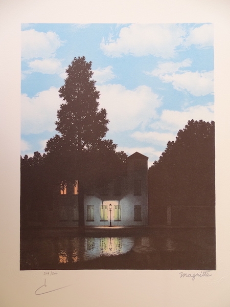 Very beautiful and colorful color lithograph (2010) released by Philippe Moreno's studio with permission and under the control of the ADAGP, which represents the legacy of René Magritte. Magritte's signature is printed. The work has been paragraphed by Charly Herscovici, representative of the Magritte estate. The work is numbered and also contains embossing stamps from the publisher ADAGP and the estate of Magritte. The work has never been framed and is in very good condition. The gallery price for this work is 1000 to 1500 euros.