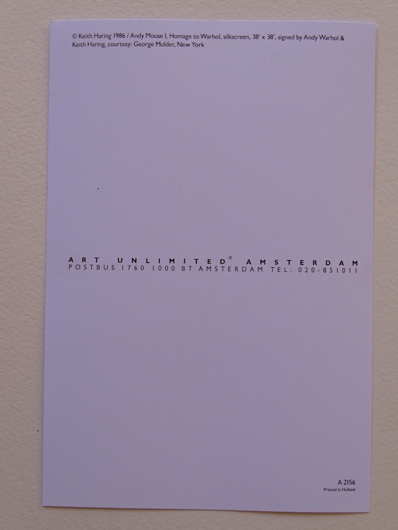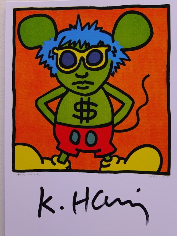 Keith Haring Postcard, hand signed 15x10cm The front of the banknote features Heith Haring's signature in black marker Keith Allen Haring (May 4, 1958 February 16, 1990) was an American artist whose pop art emerged from the New York City graffiti subculture of the 1980s. His animated imagery has "become a widely recognized visual language".[2] Much of his work includes sexual allusions that turned into social activism by using the images to advocate for safe sex and AIDS awareness.[3] In addition to solo gallery exhibitions, he participated in renowned national and international group shows such as documenta in Kassel, the Whitney Biennial in New York, the São Paulo Biennial, and the Venice Biennale. The Whitney Museum held a retrospective of his art in 1997.