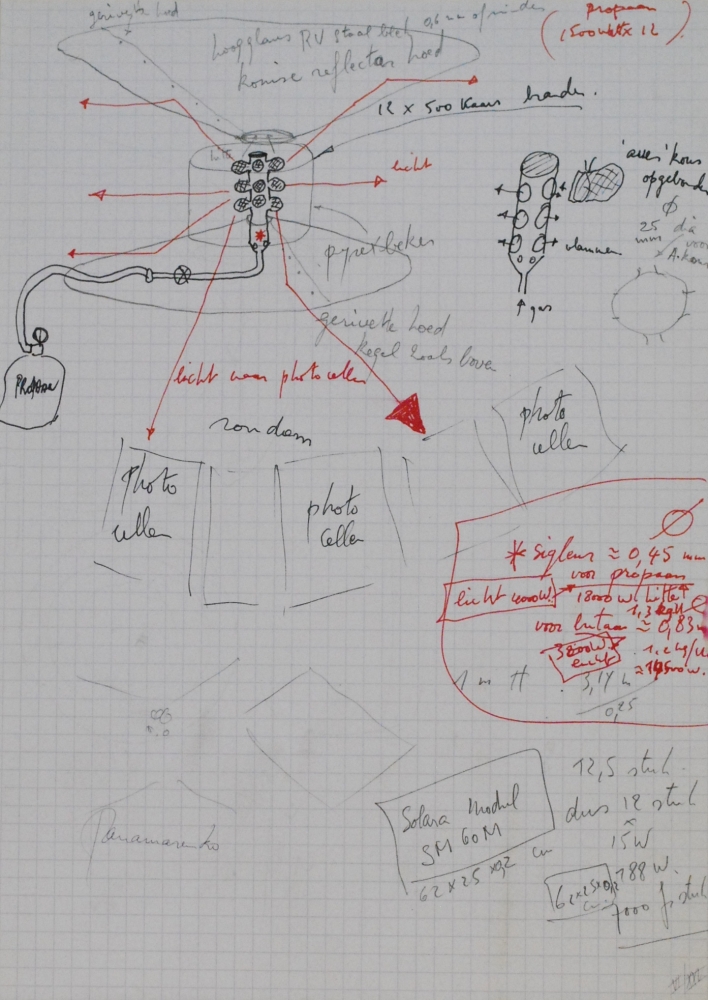 Lithografie uit de map Thermo photovoltaic energy converter. Getekend en genummerd op 100 exemplaren + 25 Romeins genummerde + enkele AP. Het aangeboden exemplaar is een AP exemplaar (Artist Proof). Dit waren de exemplaren die voor Panamarenko zelf voorbestemd waren. In uiterst perfecte staat.