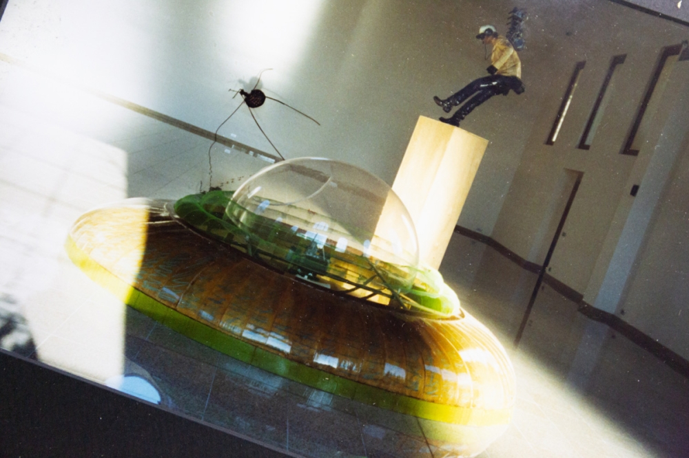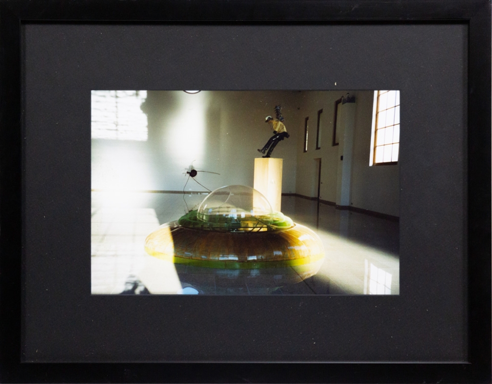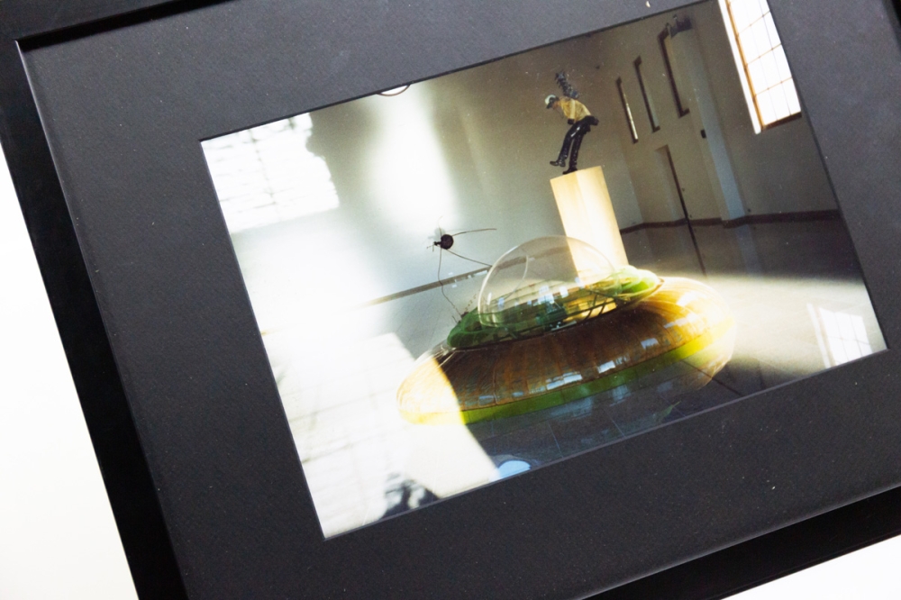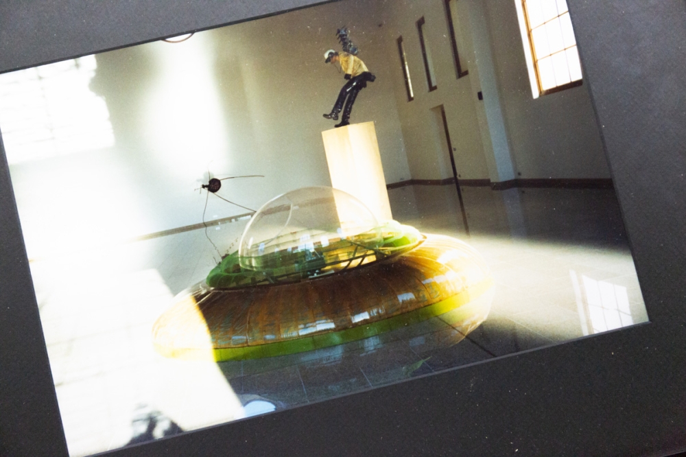 Foto gemaakt door Rony Heirman, op een expositie van Panamarenko bij Ronny Van de Velde in Antwerpen. Hierop wordt het werk Prova Car afgebeeld.