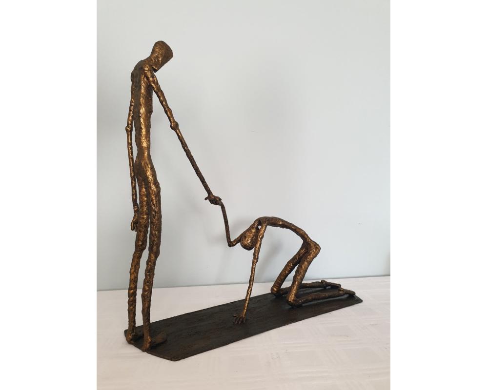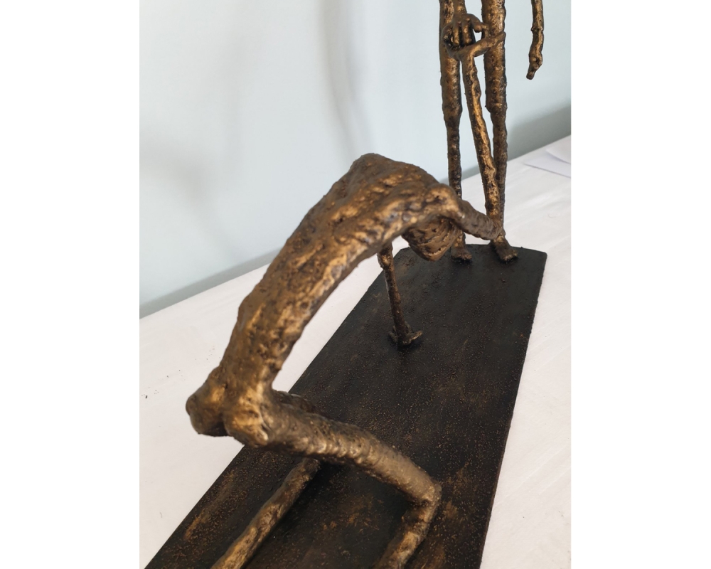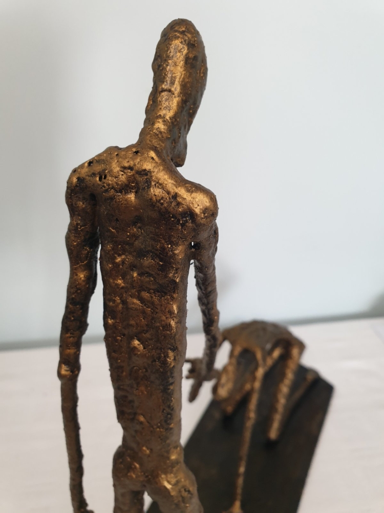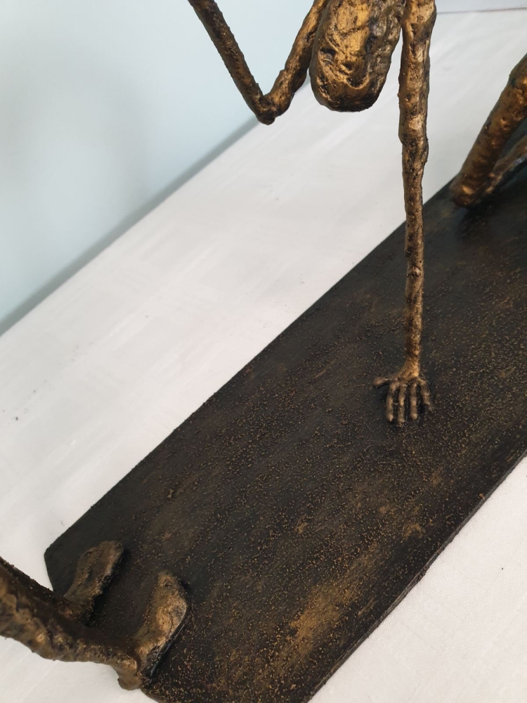 Forgiveness, inspired by Giacometti's sculpture "Walking Man" - metal sculpture, welding and forging, it is not a casting... Material: carbon steel Color: black with golden wax, Dimensions: 370x350x110, mm/ 1993 g, only for indoor use...... One of a kind work Unique work, comes with a certificate of authenticity. IMPORTANT NOTE: SHIPPING TO THE EU ONLY - NO SHIPPING TO NON-EU COUNTRIES. Tihomir Sarajcic is owner of S-art a Croatian craft studio/workshop that composes sculptures with welded and painted iron/ metal and wall art. Exhibitions since 2015 in city library Slavonski Brod. The S-art studio also participate on art festivals..... www.s-art.hr