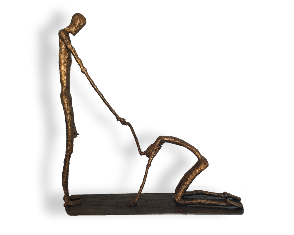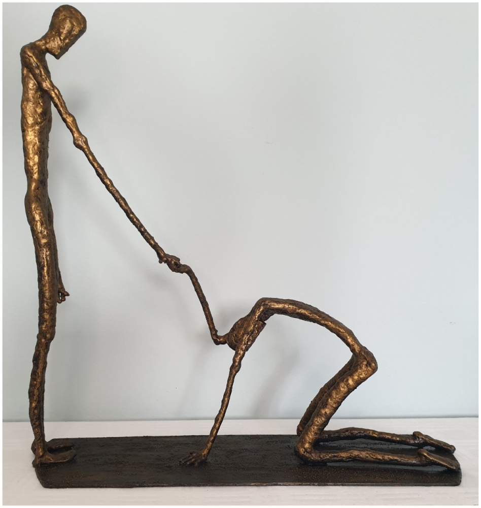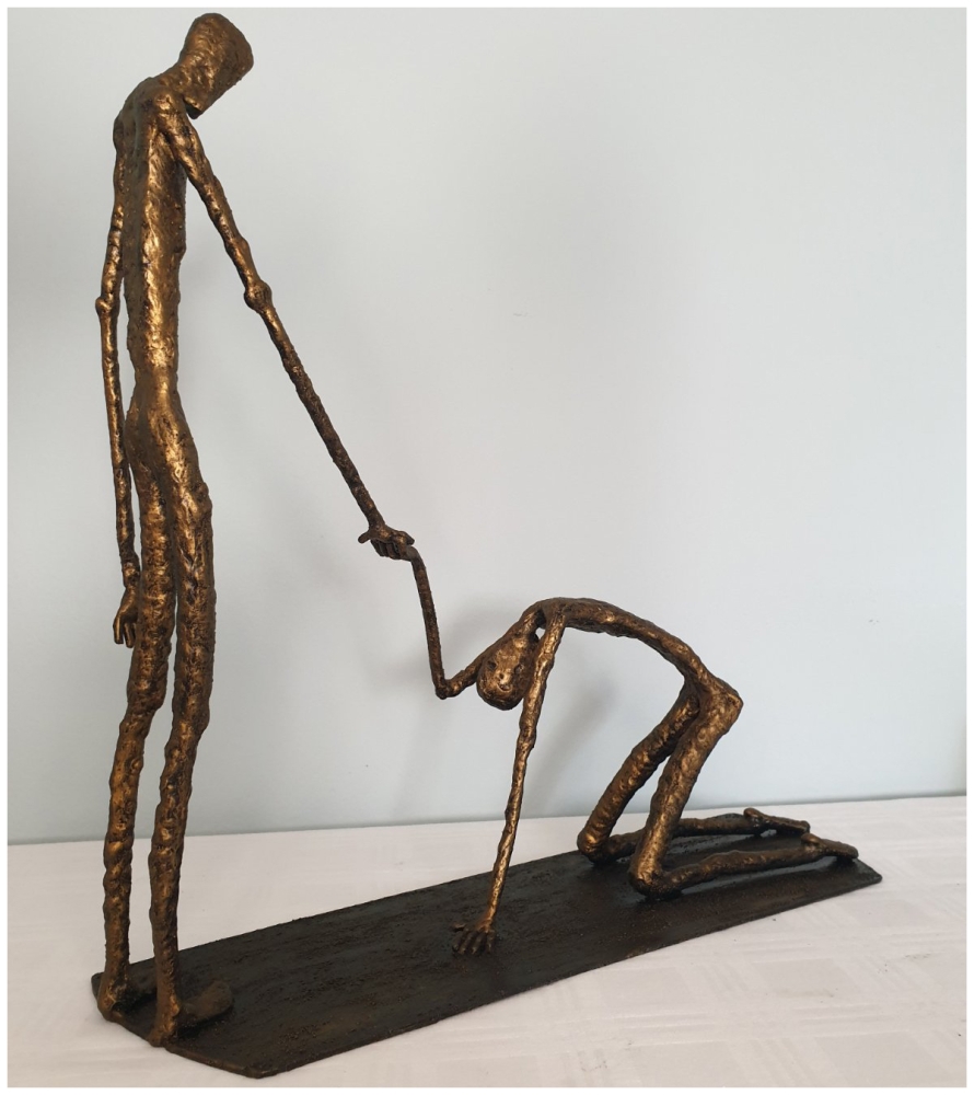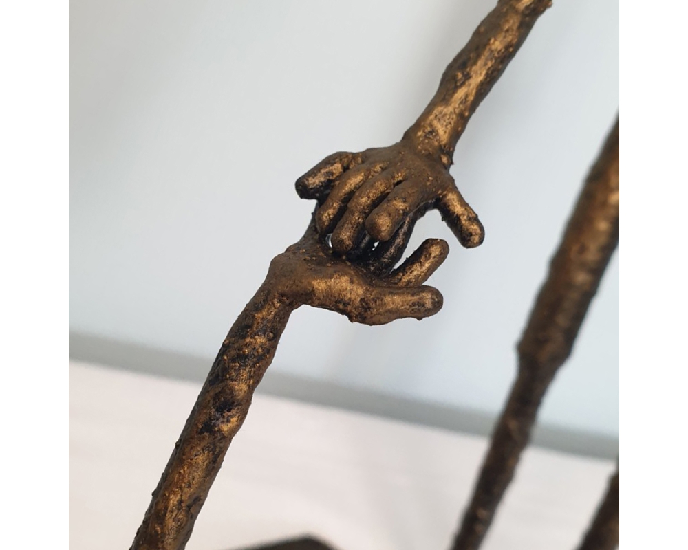 Forgiveness, inspired by Giacometti's sculpture "Walking Man" - metal sculpture, welding and forging, it is not a casting... Material: carbon steel Color: black with golden wax, Dimensions: 370x350x110, mm/ 1993 g, only for indoor use...... One of a kind work Unique work, comes with a certificate of authenticity. IMPORTANT NOTE: SHIPPING TO THE EU ONLY - NO SHIPPING TO NON-EU COUNTRIES. Tihomir Sarajcic is owner of S-art a Croatian craft studio/workshop that composes sculptures with welded and painted iron/ metal and wall art. Exhibitions since 2015 in city library Slavonski Brod. The S-art studio also participate on art festivals..... www.s-art.hr