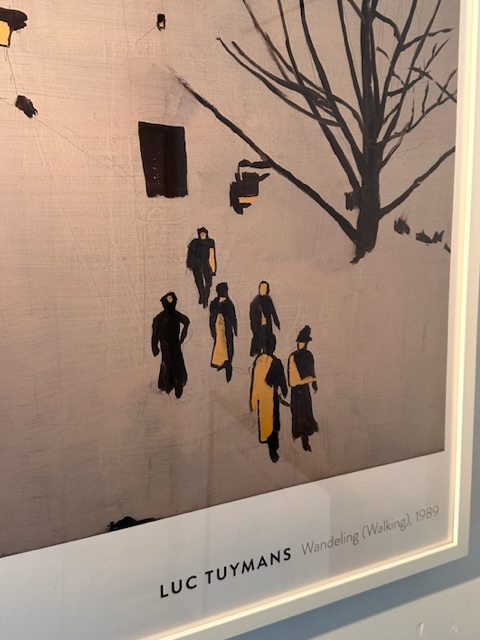 Affichelitho op dik stevig papier. Afgebeeld het werk Wandeling uit 1989. Zeer goede staat en in kader. Luc Tuymans is een Belgisch kunstschilder. Hij werkt in Antwerpen en is gehuwd met Carla Arocha, een kunstenares uit Venezuela