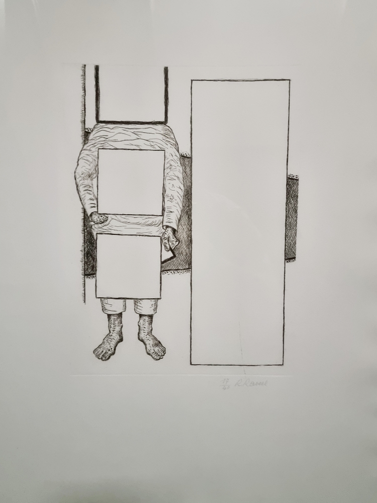 Roger Ravel. 'A person from the bottom up' Etching from 1997 Very limited edition, only 40 copies, this is number 17. Signed by the artist in pencil. Sheet dimensions: 80 x 56 cm, the etching itself measures 40 x 30 cm. Framed
