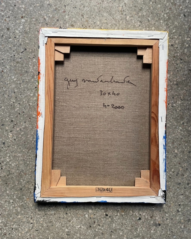 Origineel en bijzonder kleurrijk werk van Guy Vandenbranden. Olie op doek. 40 x 30 cm. Uit 2000. Gesigneerd en gedateerd op de achterzijde. In perfecte staat, rechtstreeks uit het atelier van de kunstenaar bekomen.