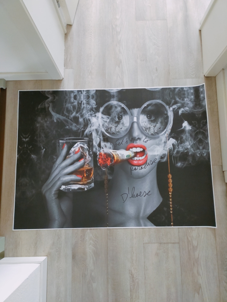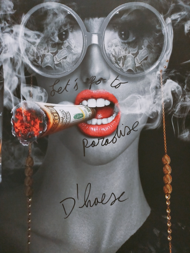 Hannes D'Haese - Let's go to paradise Print op doek Niet ingelijst Handgeschreven tekst + handgesigneerd Perfecte staat Elke print heeft een andere tekst dus een uniek exemplaar. Hannes D'Haese is een bekende Belgische kunstenaar, vooral bekend van zijn sculpturen.