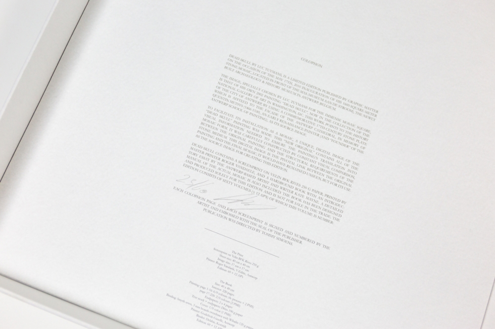 Editie Dead Skull van Luc Tuymans. Dead skull was een voor de gelegenheid van de opening van zijn 1600 vierkante meter stenen mozaiek, aan het MAS in Antwerpen. Op zijn beurt was dit werk gebaseerd op een origineel schilderij "Dead Skull" in 2002, olie op doek.