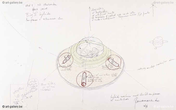 Kleurenzeefdruk van Panamarenko. Met de hand gesigneerd en genummerd op 75 exemplaren. Dit werk werd deels met de hand ingekleurd. Dit werk werd professioneel ingelijst in een plexibox. Met bijhorend certificaat uitgegeven door de PanamarenkoShop. Oplage 75 + 25 Romeinsgenummerd.