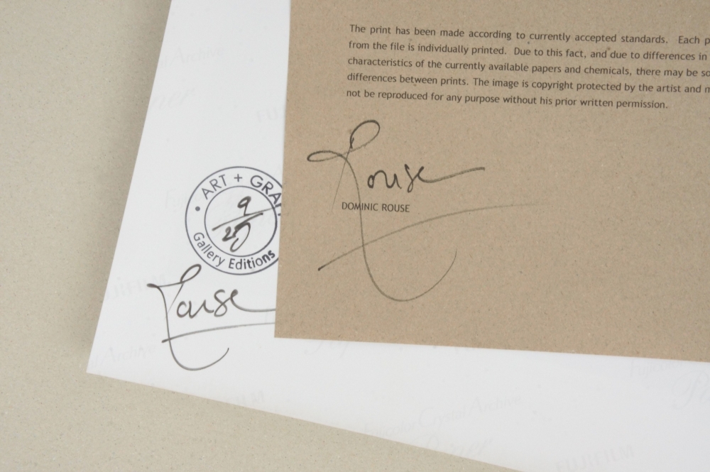 ● "Beauty is the fallacy that illuminates the truth." - Dominic Rouse ● Chromogenic print on Fuji Crystal Archive paper ● Paper Size 15" x 12" (38 x 30 cm) - Image Size 13" x 8.75" (33 x 22 cm) - Edition #9/25 ● Image Date May 1992 - Print Date November 2015 ● Catalogue S-DHR013FU - Mint Condition ● Hand signed in black ink ● Numbered artist stamp ● Title below image ● Signed Certificate of print authenticity ● Ships in a large PVC tube