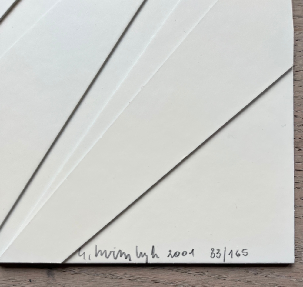 I sell a beautiful "Monochrome Relief" by Gilbert Swimberghe. The piece is a collage of hard cardboard painted in blue from 2001. The piece is 22cm x 17cm and in very good condition. Numbered 83/165 and signed, dated in pencil by the artist.