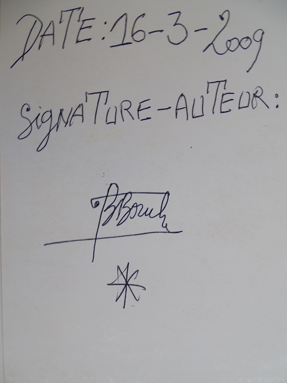 Bouabré was born in Zépréguhé, Ivory Coast, and was among the first Ivorians to be educated by the French colonial government. On 11 March 1948, he received a vision, which directly influenced much of his later works. Bouabré created many of his hundreds of small drawings while working as a clerk in various government offices. These drawings depicted many different subjects, mostly drawn from local folklore; some also described his own visions. All the drawings are part of a larger cycle, titled World Knowledge. Bouabré also created a 448-letter, universal Bété syllabary, which he used to transcribe the oral tradition of his people, the Bétés. His visual language is portrayed on some 1,000 small cards using ballpoint pens and crayons, with symbolic imagery surrounded by text, each carrying a unique divinatory message and comments on life and history. Many of Bouabré's drawings are in The Contemporary African Art Collection (CAAC) of Meshac Gaba. One of his emblematic drawings is saved in the L'appartement 22 collection on the African continent: "Une divine peinture relevée sur le corps d'une mandarine jaunie", made by Bouabré in 1994 in Abidjan.