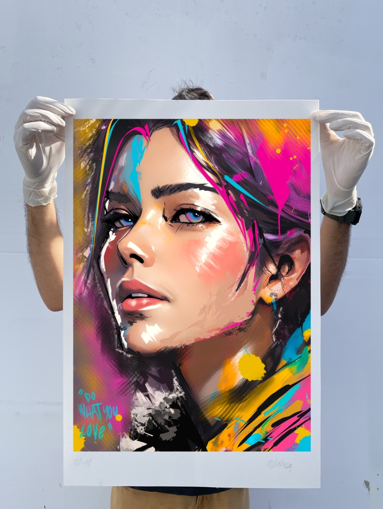 "Chromatic Serenity" Presenting a remarkable rendition of Oliver's artwork: "Chromatic Serenity" this exclusive edition exemplifies the artist's exceptional talent and boundless creativity. This is a original, one of a kind piece, Painted Digitally and Printed on top-tier paper, created on a cylinder mold. Its smooth, silky texture exudes an aura of prestige, elevating the artwork's allure to unparalleled heights. Oliver, a passionate artist residing in Portugal, discovered his deep-seated love for Urban art and Illustration from a tender age. Over the years, his artistic journey has unfurled, expanding his skills into various creative realms, including concept art, captivating canvases to immersive 3D renders and digital masterpieces.