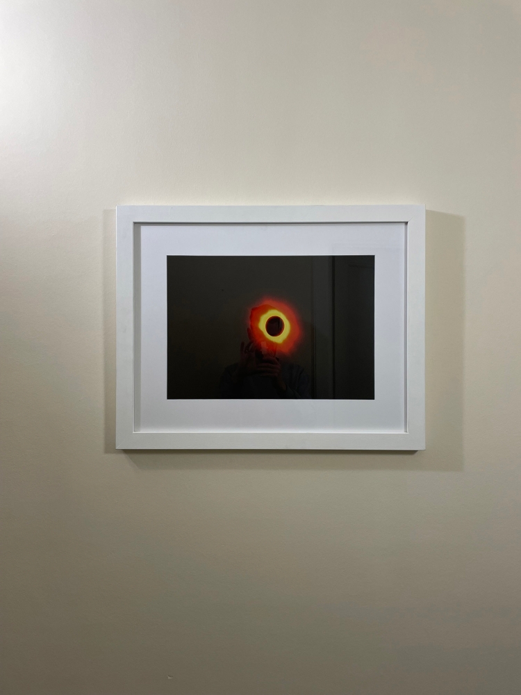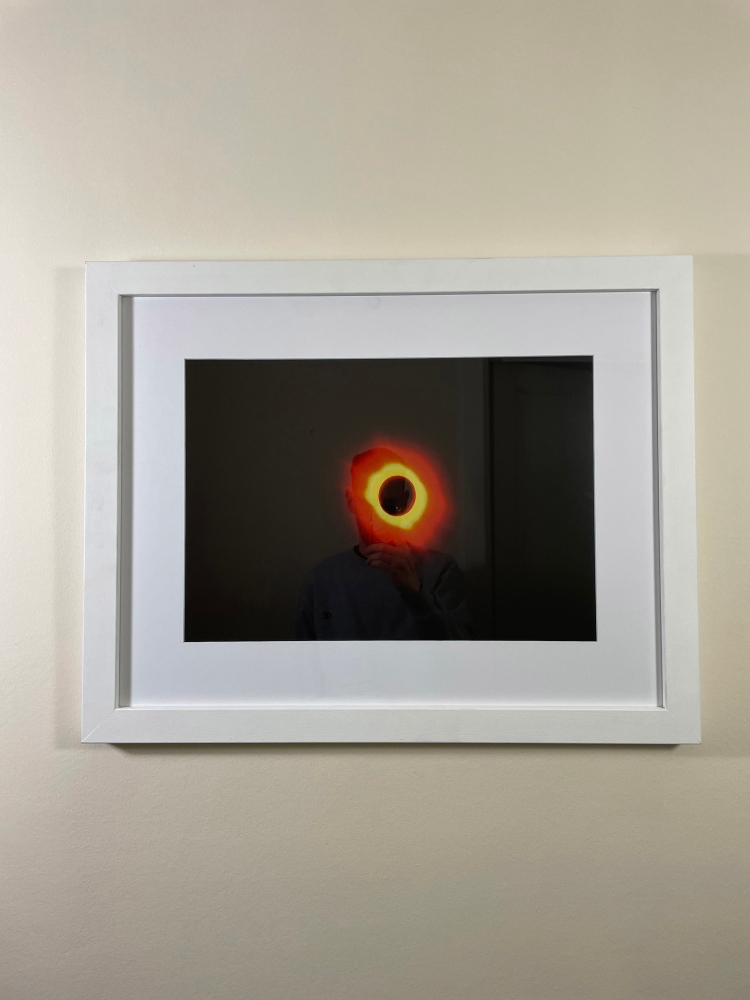 Framed photo lithograph of solar eclipse by Ann Veronica Janssens from 2013. This work is made in a series of 4 and all four are offered separately. The work is hand-numbered by the artist (see photo). Ann Veronica Janssens (B, 1956) is an international sculptor of light, sound and space. Ann Veronica Janssens almost always works in a minimal way without really belonging to minimal art. However, the fact that her work is sometimes associated with the minimalist movement is due to the clear design and choice of materials: transparent, glossy or, conversely, condensed and seemingly inaccessible. The artist lives and works in Brussels. The photo is from the series 'Museum to scale' published by gallerist Ronny Van de Velde. The whole will be professionally packed and shipped.
