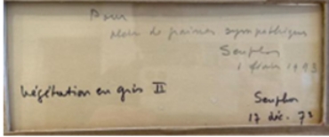 Mixed media (drawing with collage and watercolor) Signed twice on the back. Dated '72 Titled: Végétation en gris II With order 51 x 36 cm Framed with museum glass