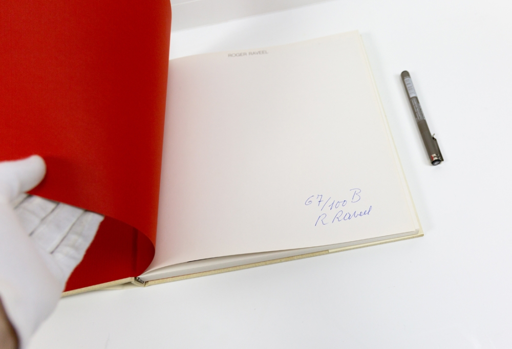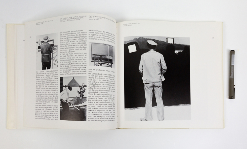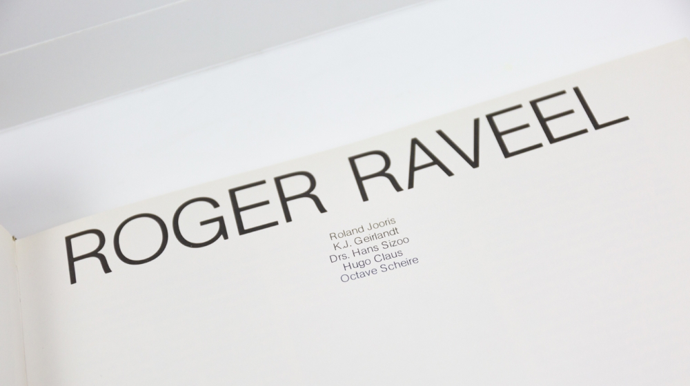 Boek getiteld "Roger Raveel" van Roland Jooris en K.J. Geirlandt, uitgegegven door Van Spijk Art Projects. Het boek geeft een mooie visuele presentatie van Raveel's werk, met ongeveer een 90-tal (+-50 kleuren en +-40 zwart-wit fotos).
