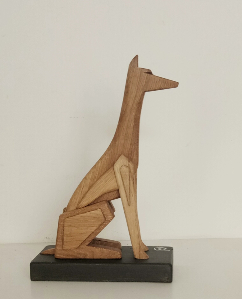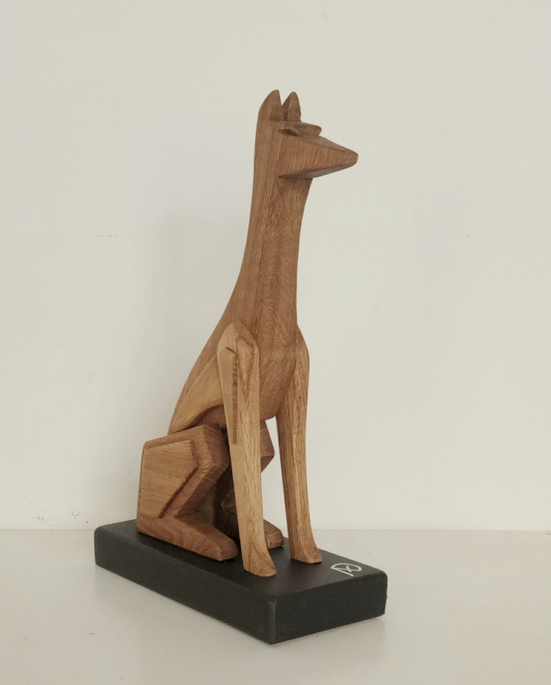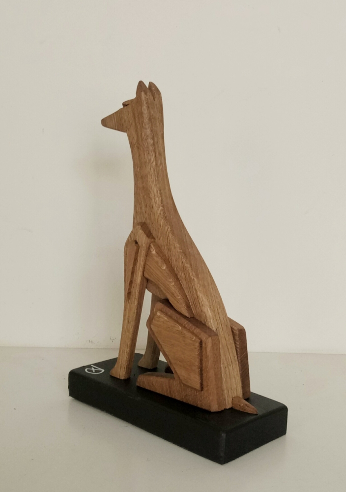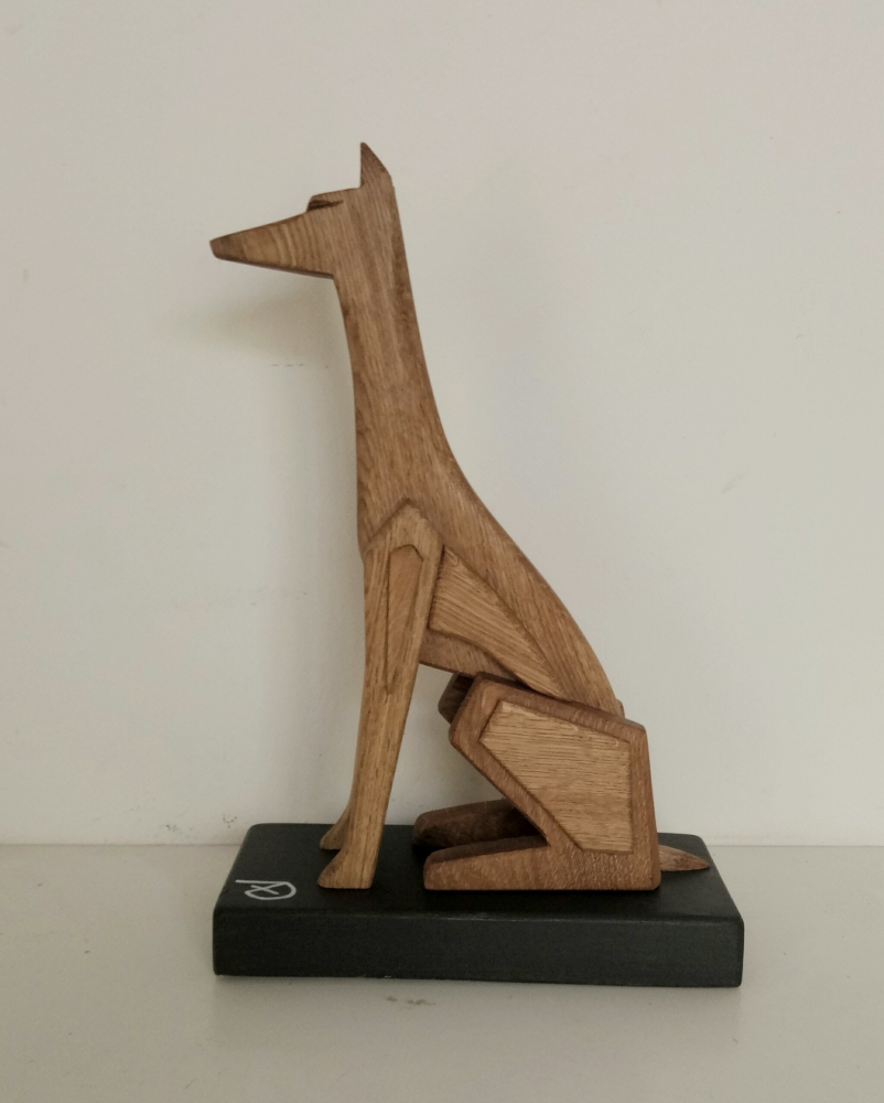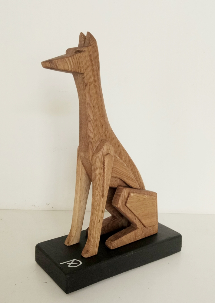 The artistic sculpture "Geometric Anubi" is made of solid oak wood; clear water-based varnish finish. The sculpture is designed for interior furnishings and from every angle it takes on a different shape. The object takes the shape of a stylized and geometric dog. This is a unique piece Brand A+D art