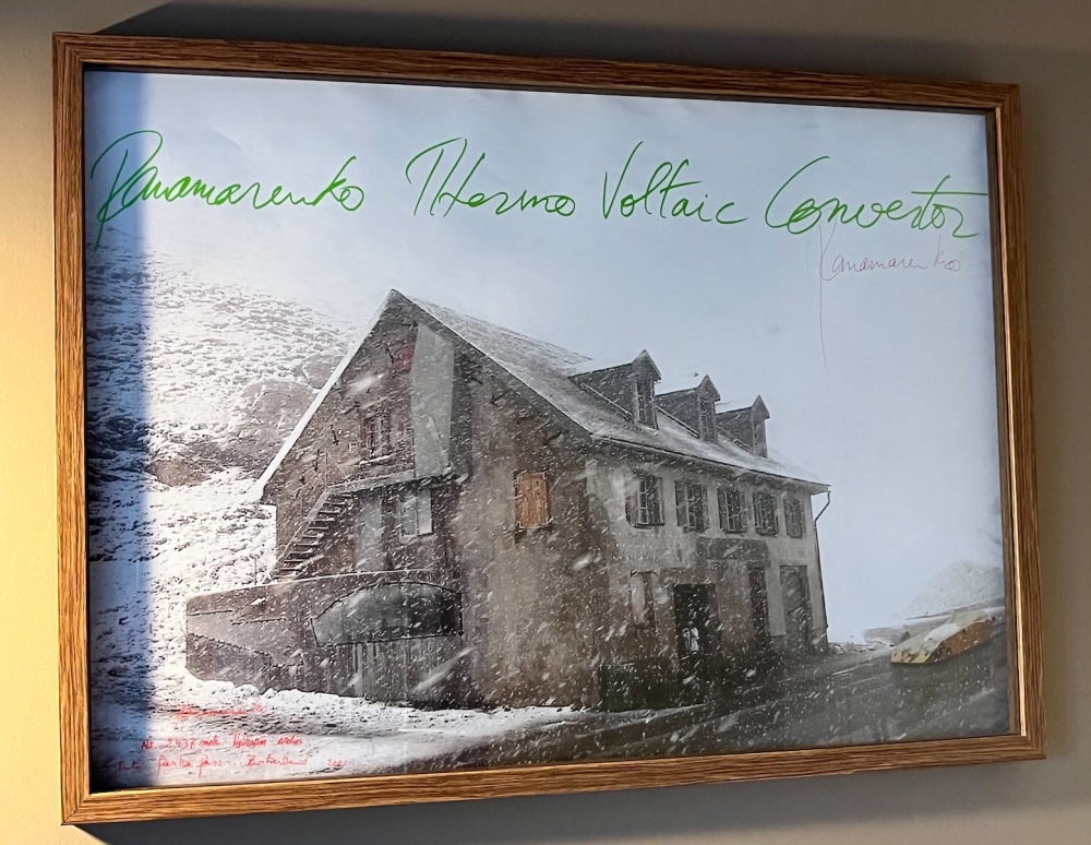 Handgesigneerde offsetlitho van de Thermo Voltaic Energy Convertor van Panamarenko. Uitgegeven in 2001 door Ronny van de Velde (Antwerpen) t.g.v. toekomstige tentoonstellingen van Panamarenko. Afmetingen: 69x49cm Afmetingen lijst: 73x53cm Jaar: 2001 Beperkt aantal werden handgesigneerd door Panamarenko