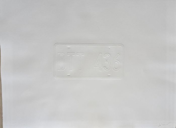 Origineel werk van Jan Hendrikse, recht van de kunstenaar ontvangen in zijn atelier te Antwerpen. Doordruk van een nummerplaat, in zeer goede conditie. Jan Henderikse is samen met Jan Schoonhoven en Henk Peeters de oprichter van de NUL-strekking