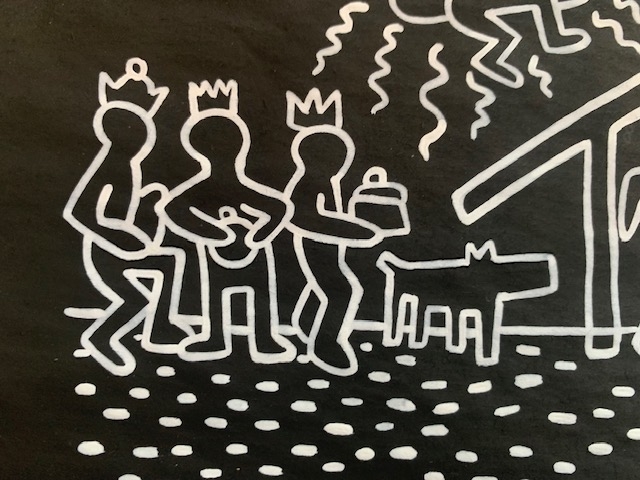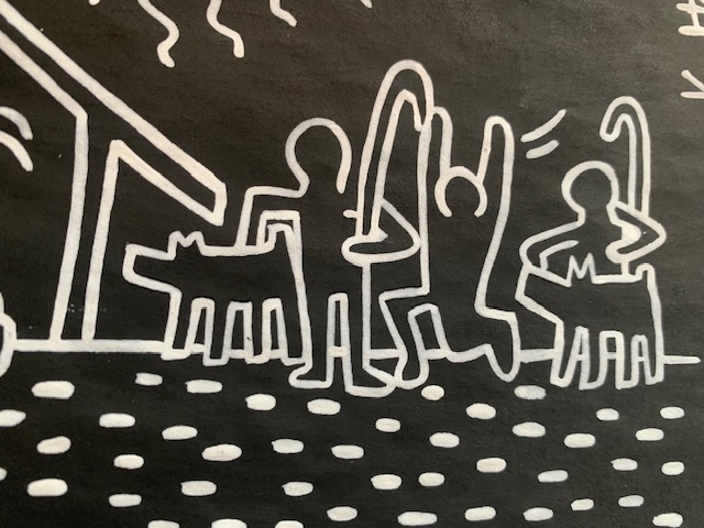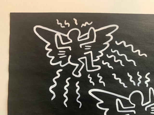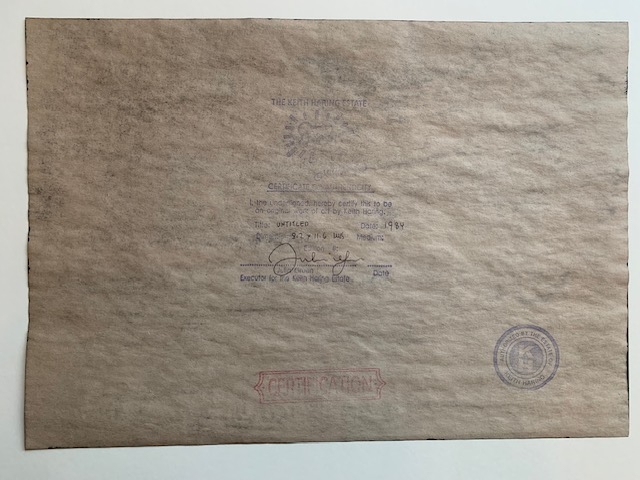 Aangeboden uniek werk door Keith Haring. Het werk is aan de achterkant voorzien van stempel The Estate of Keith Haring en stempel door Julia Gruen ondertekend. Geen recente COA, aangezien deze niet meer uitgegeven worden. Het werk stelt meerdere kenmerkende Keith Haring figueren voor. Afmeting 30 x 20 cm, gesigneerd aan de voorzijde. Materiaal gouache op papier.