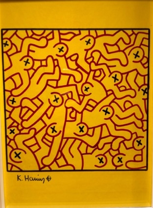 Original color drawing by Keith Haring. Stamped on the reverse and signed on the front. In very good condition. Keith Haring was an American artist. The art that Keith Haring made is sometimes called pop art, but the terms graffiti art and modern art are also used. His cartoonish paintings and drawings were about AIDS, drugs and apartheid, among other things