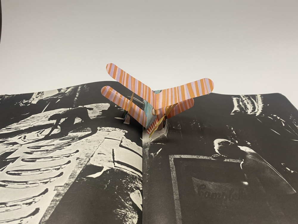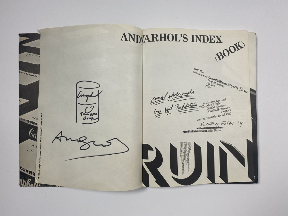 Original drawing by American pop art artist Andy Warhol with signature in rare pop-up book. Various pop-up items when unfolding the book. Insured shipping and collection possible.