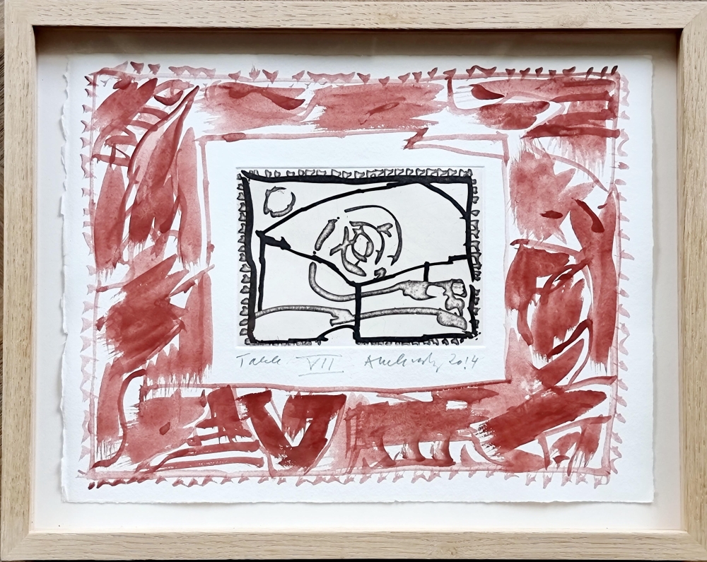 Origineel werk van Pierre Alechinsky. Mixed Media: Aquarelle + Ets op vélin d'Arches "Toujours Là VII" Gesigneerd, gedateerd en getiteld in potlood door de kunstenaar Het werk is professioneel ingelijst met een kader in eik. Provenance: Rechtstreeks van de kunstenaar Er is een certificaat beschikbaar