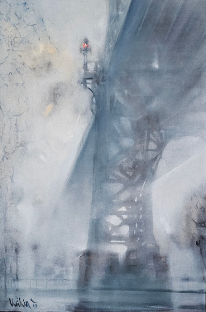 ,, A walk in the fog,, you wander through the ghost town, scaffolding abandoned against gutted apartment blocks, bridges adrift in the fog and the rain.......................................www.vadimgallery.com