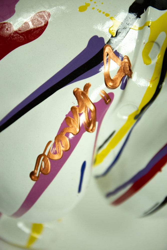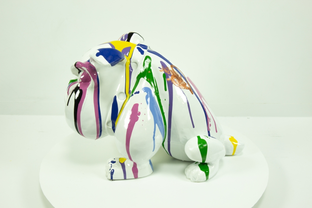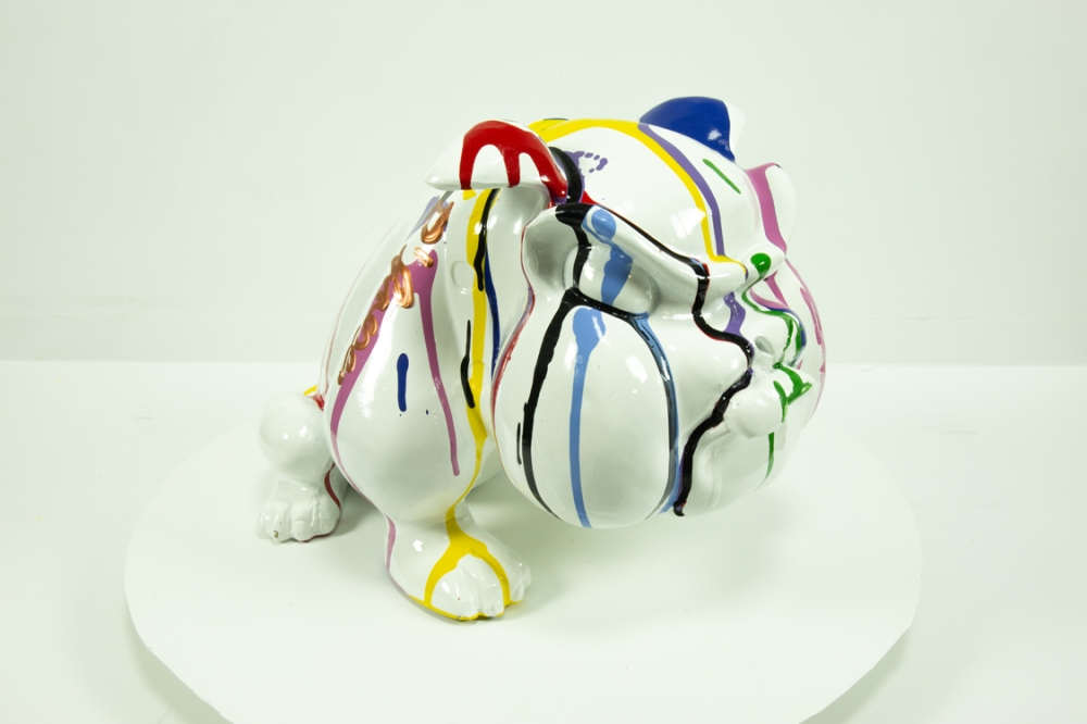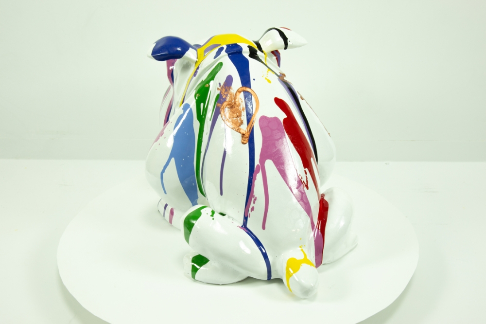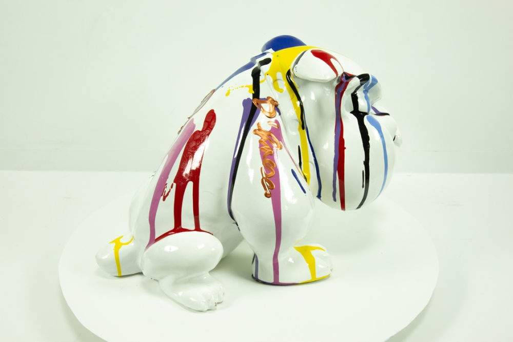 Origineel beschilderde hond van Hannes D'Haese. Het werk is met de hand gesigneerd. Iedere hond is uniek beschilderd zodat dit een enige exemplaar is. Wordt afgeleverd met certificaat van HannesDhaeseshop.
