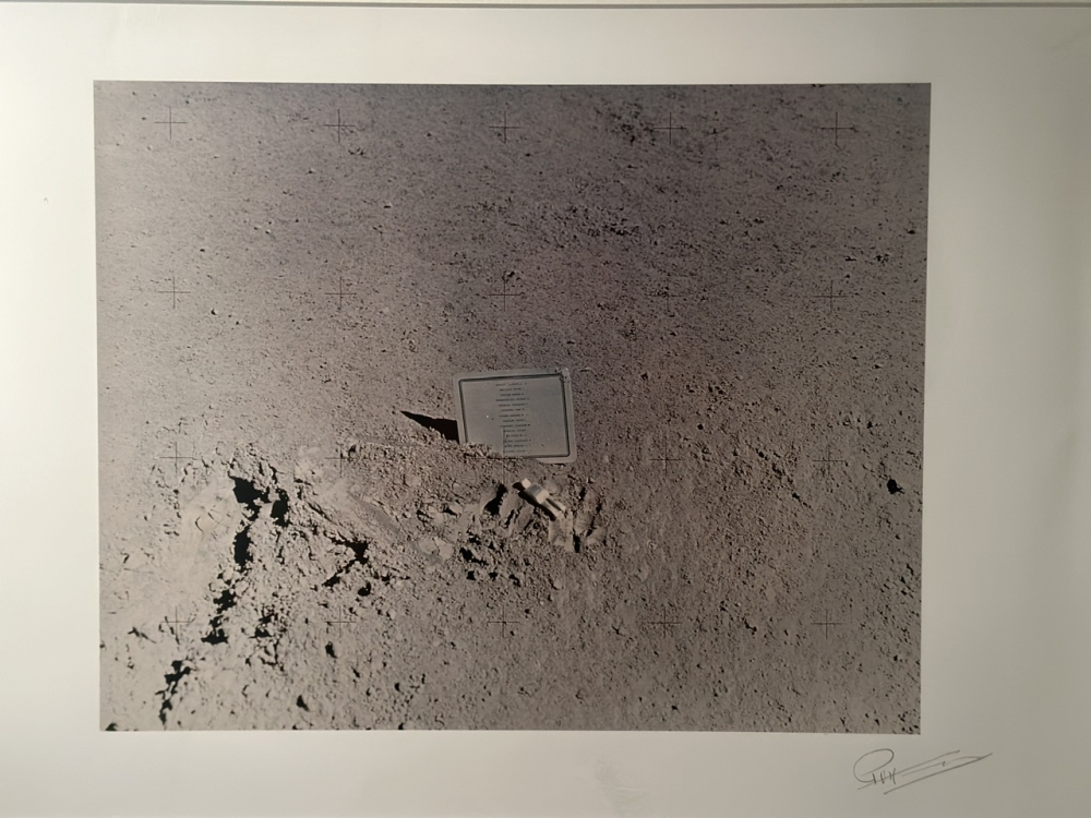 Gesigneerde fotoprint van het eerste, en tot op heden, enige kunstobject op de maan: fallen astronaut Ingekaderd en handgesigneerd door Paul Van Hoeydonck Tijdens de maanmissie in 1971 plaatste de crew van Apollo 15 een aluminium beeldje van een gevallen ruimtevaarder naast een gedenkteken. Het figuurtje, gemaakt door Paul Van Hoeydonck, werd daarbij het eerste kunstwerk op de maan
