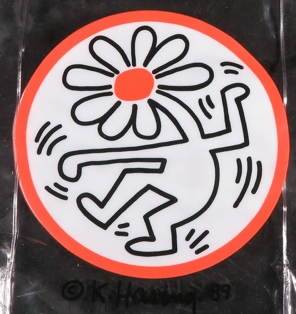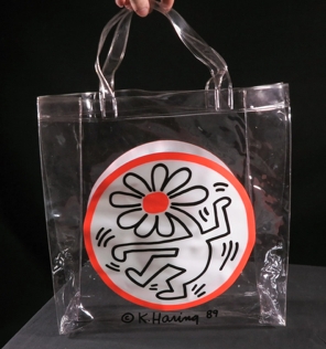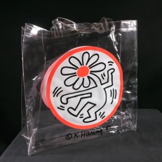 Plastic tas afkomstig uit de befaamde "Pop Shop" van Keith Haring (zie foto's) Deze tas is op beide kanten bedrukt en betreft de voorstelling: "Dancing Flower" (ook bekend onder naam "Flower Man"). Keith Haring heeft de Pop Shop in het leven geroepen om zijn kunst dichter bij de gewone mensen te brengen. Keith Haring was in de vorige eeuw samen met Andy Warhol en Basquiat een van de baanbrekende figuren in de kunstscene. Deze vintage tas is zeer zeldzaam en een echt collectors item!