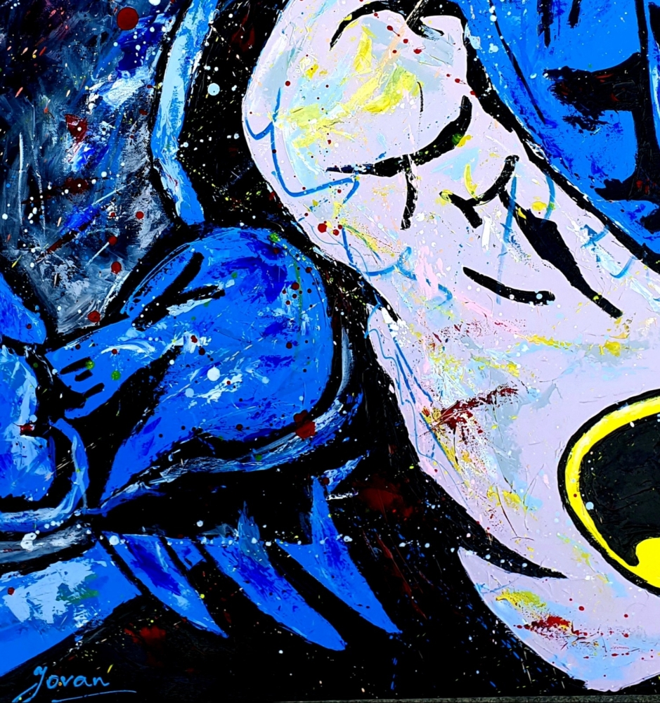 Uniek werk, uit serie schilderijen in Street / Pop art stijl, door Nederlands professioneel / hedendaagse kunstenaar Jovan Srijemac (1962). Werk is geschilderd op 3D doek met acrylverf, paletmes, acryl spray en acryl marker... Schilderij is handgesigneerd, met echtheid certificaat, is gevernist en klaar om op te hangen. De zijkanten zijn geverfd als onderdeel van het schilderij en hoeven niet in te lijsten. Dit werk past goed in een modern interieur of kantoorruimte. `` De chaos van ideeën die in mijn hoofd zijn ontstaan, de innerlijke verstoken energie, wil eruit komen als een vulkaan en zo een explosie worden en een symfonie van kleuren op het doek, omlijst met materie, figuren, gezichten of abstracte compositie '' . Mijn werk staat dicht bij de expressionistische stijl, maar ik experimenteer graag met pop art en action painting. Mijn werk uit de jaren 80 was surrealistisch. Ik wilde de kijkers een boodschap brengen. Het hoofdthema ging over het leven in de wereld, tegen de oorlog. In de jaren 90 was mijn werk somber, donker van kleur, net als mijn gevoelens. Ik ben begin jaren negentig uit mijn land (voormalig Joegoslavië) ontsnapt toen de oorlog uitbrak. In de jaren 00 was ik op zoek naar kleur. tot dusver eindelijk gelukt. Mijn werk is nu kleurrijk, abstract expressionistisch. Het meeste werk is geschilderd met een pallet mes. Er is kleur op het doek aangebracht met een gevoel en emotie die diep uit mijn ziel komt. Thema is minder belangrijk als ik tevreden ben met de compositie en de kleur. Experimenteren in kunst, met stijlen, technieken, kleuren, etc, vind ik erg belangrijk. Ik denk: "Als je als kunstenaar je hele leven maar aan één stijl vasthoudt, dan ben je als kunstenaar dood." In de kunst en in het leven is voor mij één doel: doorgaan! En ik zeg vaak: "We weten niet wat er achter de gesloten deur verborgen is totdat we hem openen" Citat uit mijn boek : ''Apocalyps van de ziel''